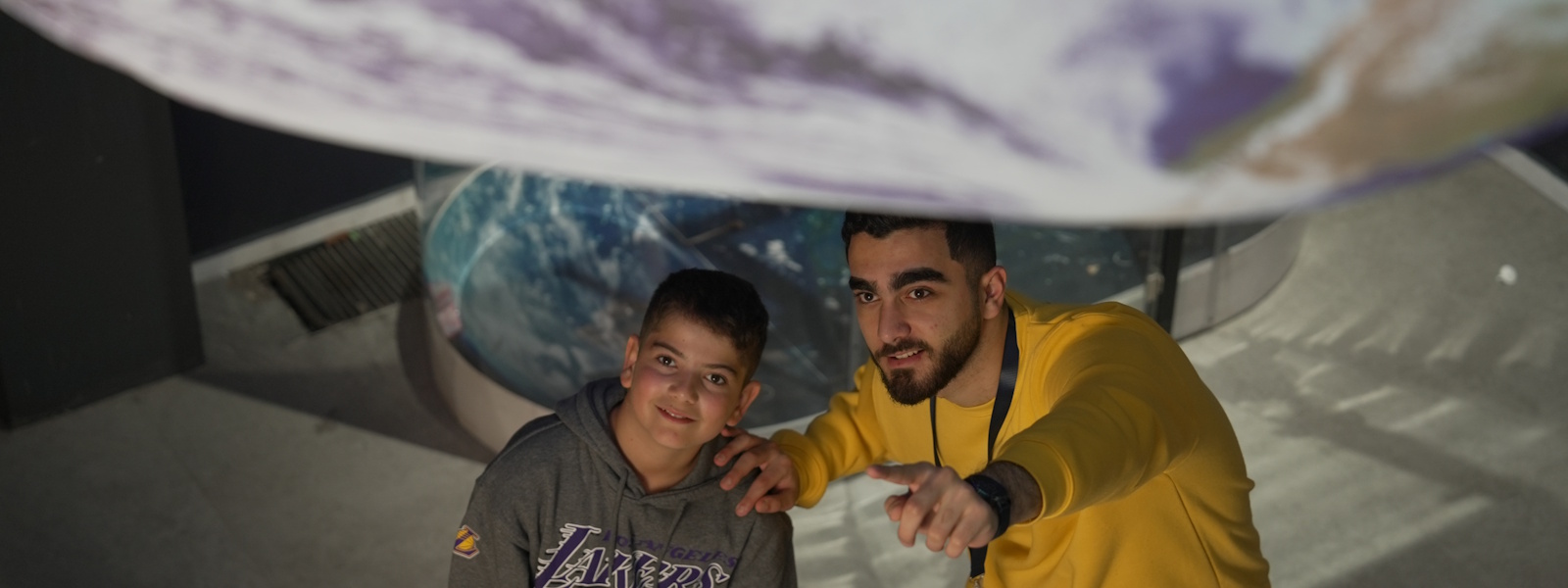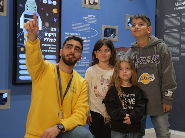 בסביבת פעילות מוחשכת ומודרכת 'נחנה' לרגע בחלל החיצון ונסתכל במבט מבחוץ על המערכת התלת-גופית הקסומה של השמש, כדור הארץ והירח.